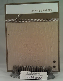 The Get Well card that uses Really Retro, thats been retired for a while now. I like it though, keeps things simple! I used the Woodgrain impressions folder for the Big Shot, and added some twine under the Soft Suede cardstock.